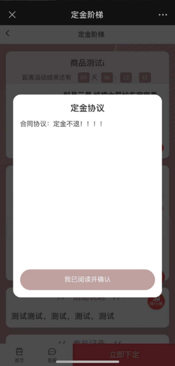 (2)客户下订单前需根据活动设置的协议先确认协议或签订合同后才能下定;