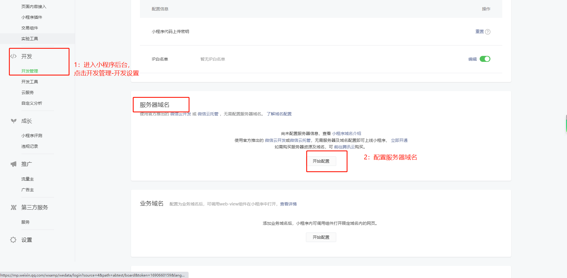 2:点击开发管理-开发设置-设置密钥,并且复制好信息,点击添加IP白名单。