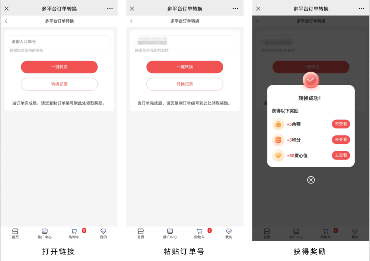 3:转换订单,领取奖励