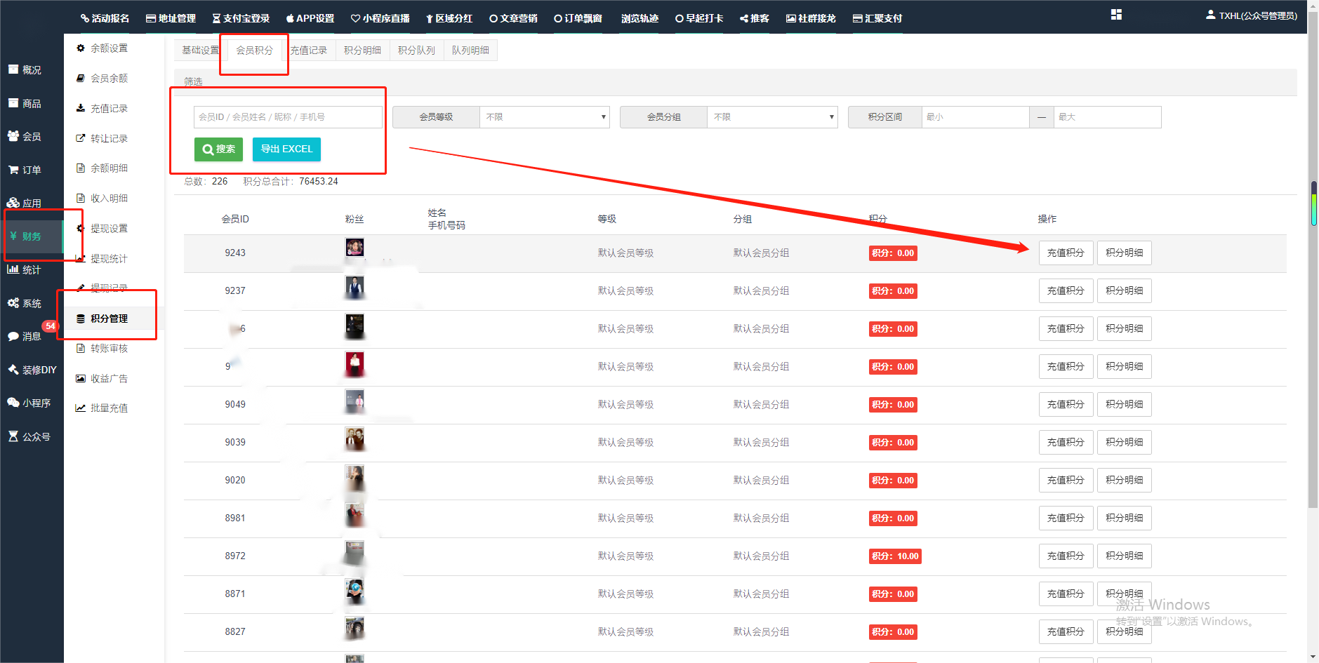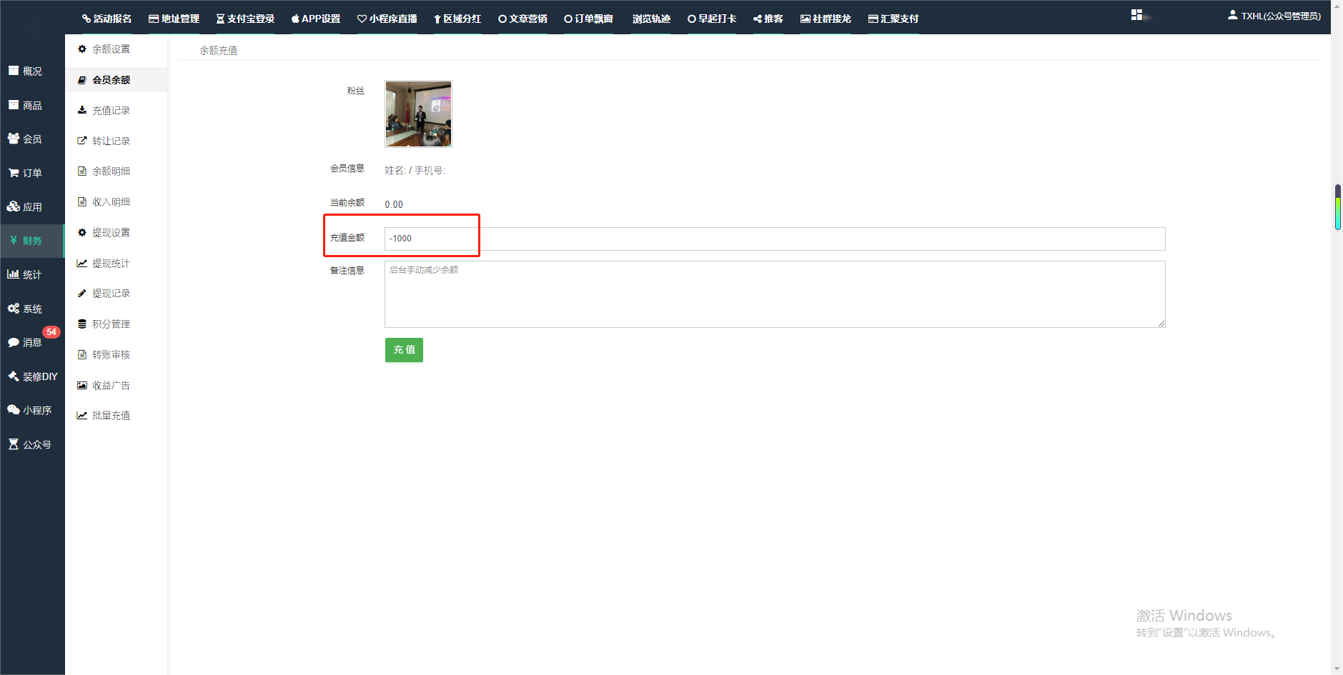 目录 搜索 展开 一、前期准备资料二、数字乡村码-上线操作指南1、服务号的申请流程及认证2、申请小程序流程3、开放平台绑定小程序和公众号三、数字乡村码-系统操作数字乡村码系统管理-概况数字乡村码-商品管理1、发布商品2、商品列表3、商品表单4、商品分类5、品牌管理6、配送模板7、评论管理8、优惠券管理9、商品标签10、退货地址设置11、满额优惠12、批量操作13、配送方式14、基础设置15、商品隐藏四、数字乡村码-会员管理1、全部会员2、会员等级3、会员分组4、资格申请5、会员设置6、推广中心设置7、会员邀请码8、会员关系链修改关系链修改记录9、会员合并记录10、账号注销管理11、会员设置中心五、数字乡村码-订单管理1、订单管理列表2、订单处理流程3、订单状态4、订单修改价格5、订单退款退货6、多包裹发货7、批量发货订单操作步骤8、催发货订单9、物流查询六、数字乡村码-财务管理1、余额设置2、会员余额3、充值记录4、转让记录5、余额明细6、收入明细7、提现设置8、提现统计9、积分管理10、转账审核11、收益广告12、批量充值七、数字乡村码-系统管理1、商城入口2、商城设置①、商城设置②、订单设置③、物流查询④、短信⑤、联系方式⑥、分类⑦、优惠券⑧、分享⑨、幻灯片⑩、广告位⑫、地图设置3、交易设置4、微信模板消息自定义消息模板(新版)自定义消息模板(旧版)小程序消息模板公众号模板消息变更公告5、语言设置6、权限管理7、多媒体管理八、数字乡村码-消息管理九、数字乡村码-应用管理十、数字乡村码系统-数据统计十一、数字乡村码-页面装修DIY1、模板管理2、店铺页面3、顶部导航4、底部导航5、DIY模板市场6、首屏广告7、基础设置8、装修DIY尺寸建议十二、供应商功能插件操作指南1、供应商2、门店-收银台门店申请和使用步骤门店管理①、门店-收银台 营销设置②、门店-收银台 分润设置门店分类门店申请门店审核门店商品门店商品订单收银台订单数据统计核销员基础设置默认设置门店装修3、微社区4、会务活动十三、营销插件操作指南活动报名提货卡新人奖微店问卷调查积分视频分享1、视频分享基础设置2、视频分享发现管理3、视频分享分类管理4、视频分享评论管理5、视频分享分红记录6、视频分享短视频中心每日红包幸运大抽奖签到优惠券二维码任务奖励优惠劵文章音频文章付费文章限时购新海报拓客卡操作流程积分活动素材中心视频红包十四、入驻门店应用类1、门店预约2、附近商品3、门店定位设置4、门店控制5、门店满额包邮6、门店满额减7、导入商品8、门店搜索9、门店股东10、核销券11、多门店核销1、商城后台设置2、前端功能演示十五、常见问题1、后台登录密码修改流程2、会员-余额,积分,后台如何进行充值与扣除3、如何修改上下级关系4、一种万能的获取商城小程序路径的方法 暂无相关搜索结果! 阅读次数:1595 本文档使用 模王系统 发布 2、会员-余额,积分,后台如何进行充值与扣除 会员-余额,积分,后台如何进行充值与扣除一.如何进行余额充值-扣除1.财务-会员余额-搜索会员昵称-右边点击充值余额2.扣除余额,只需要在充值金额前加上 - 号;比如充值-100,等于扣除100余额二,如何手动充值积分-扣除积分(充值与扣除逻辑跟余额是一样的)文档更新时间: 2024-01-05 14:28 作者:链上旅行