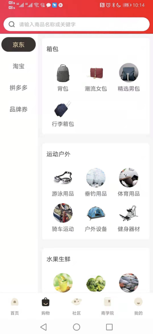 设置分类名称,选择的如果是淘宝、京东、拼多多这三种分类类型,则需要填写分类的关键词;用户在APP--购物分类中点击该分类图标,则跳转对应的平台,按照分类设置的关键词检索出对应的商品数据。